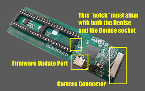 - Place Framethrower into the Denise Socket. Pay special attention to the socket “notch”.